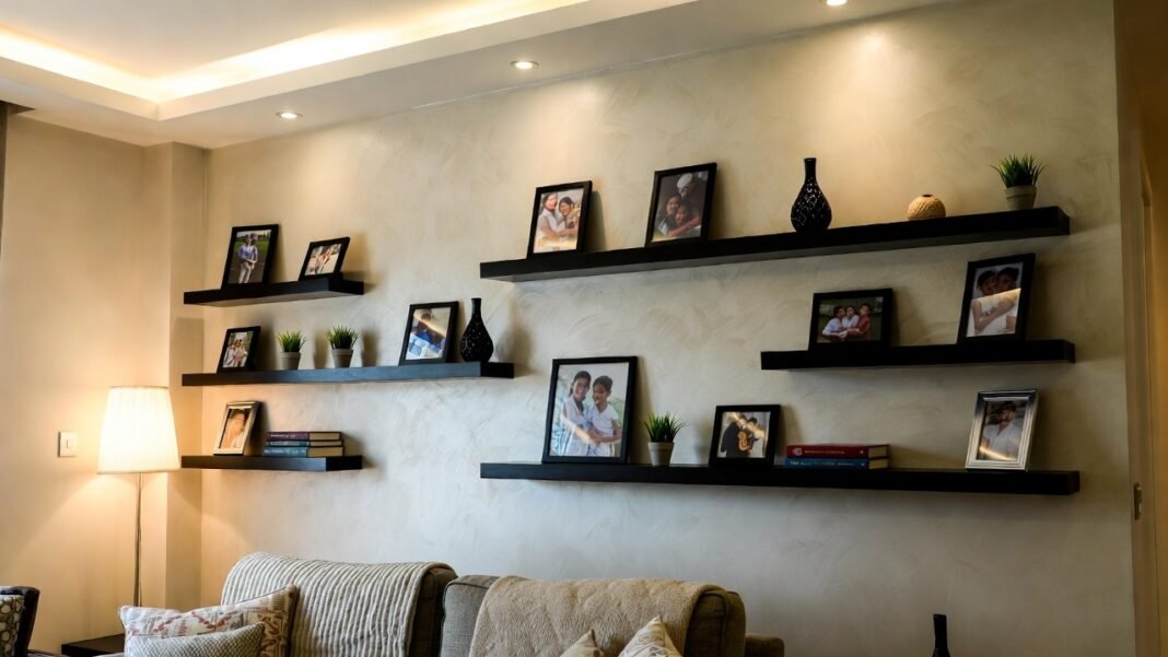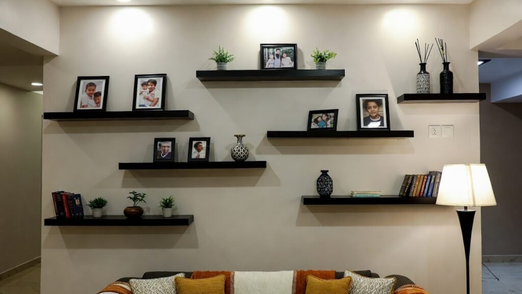 These wall-mounted shelves are especially useful in compact rooms where traditional cabinets may feel overwhelming.